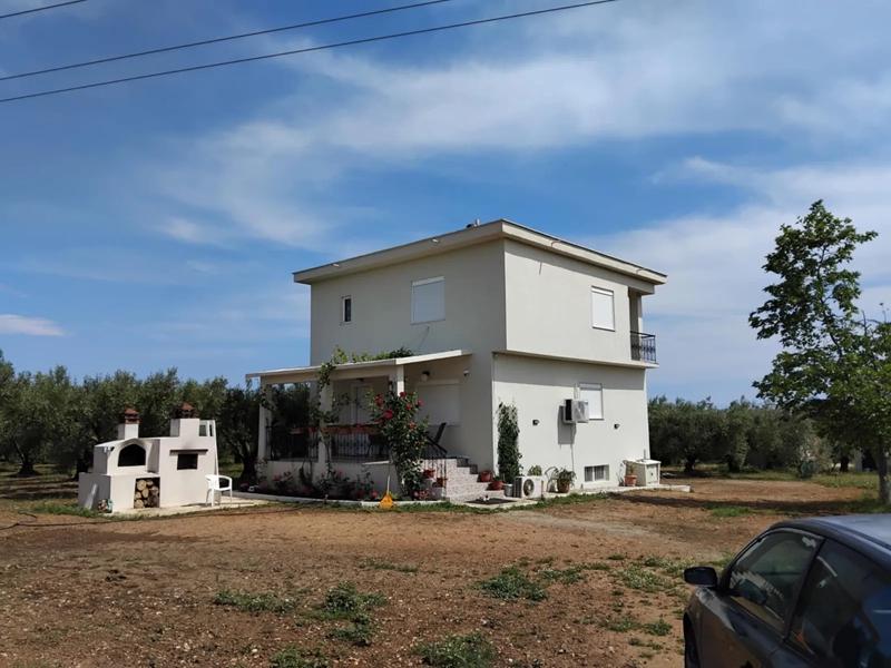 На спокойно място в Олинтос се продава реновиран мезонет с кладенец и земеделски имот от 5,9 дка с 120 продуктивни маслинови дървета. Имотът предлага неограничена гледка и уединение, само на 10 минути от морето. Идеален за ваканционен дом, постоянно живеене или агротуристическа инвестиция. Сградата има разрешение от 1980 г. за сутерена, а останалата част е построена през 2000 г.