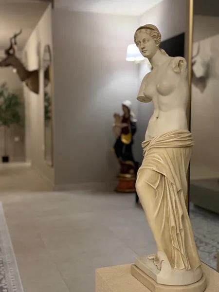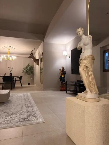 Пространството има високи тавани, ръчно изработени розети, впечатляващи полилей и големи италиански плочки, създаващи атмосфера, по-скоро напомняща на бутиков хотел или частна галерия, отколкото на сутеренен апартамент. Въпреки нивото си, той е особено светъл благодарение на трите големи прозореца, докато специално проектираната система за непрекъснато обновяване на чист въздух и климатиците с висок клас осигуряват отлично качество на въздуха и идеална температура през цялата година.