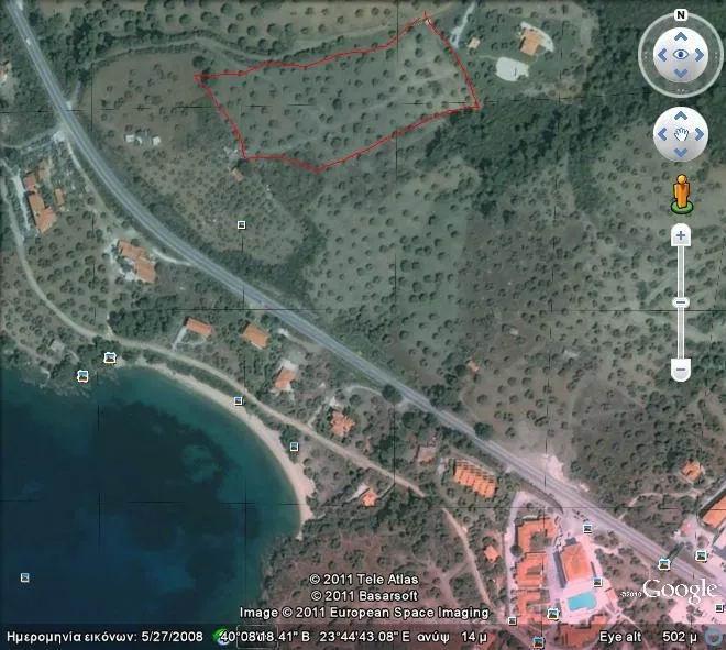 Grundstück von 8.500 m² zum Verkauf, etwas außerhalb von Elia, Chalkidiki, neben einer Wohnanlage, 8 km von Porto Carras und nur 200 Meter vom Meer entfernt.