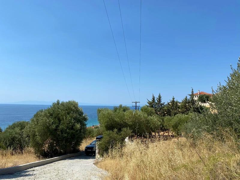 Dieses abfallende Grundstück befindet sich im Gebiet Kassandrino in Kassandra, in Mola Kaliva, und bietet einen ungehinderten Blick auf das Meer. Mit einer Gesamtfläche von 4.735 qm hat das Grundstück eine Baugenehmigung für 200 qm, was es ideal für ein Ferienhaus oder eine Investitionsentwicklung macht. Das Meer und das Dorf befinden sich in der Nähe, etwa 350 Meter entfernt, und die Zufahrt ist asphaltiert.