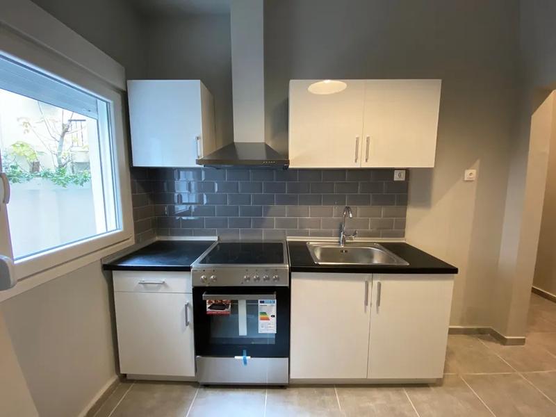 Renovierte Erdgeschosswohnung mit 47 qm, im Stadtteil Agia Triada – Faliro, ganz in der Nähe der U-Bahn-Station „Efklidis“.