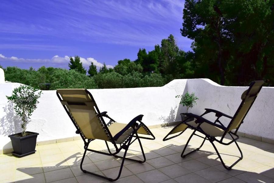 Dieses Anwesen befindet sich in der Gegend von Nikiti, nur 5 km vom Dorf entfernt, in einem Pinienwald und nur 100 m vom Meer entfernt. Es besteht aus 5 autonomen Wohnungen: 2 im Erdgeschoss, 2 im ersten Stock und eine (Penthouse) im zweiten Stock. Jede Wohnung verfügt über eine Küche, ein Badezimmer und ein separates Schlafzimmer.