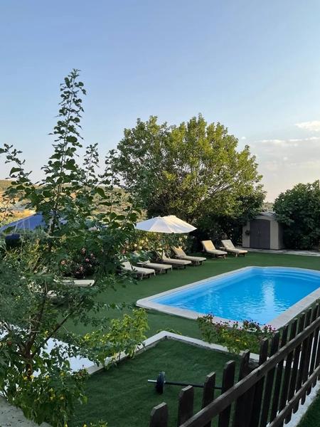Au premier étage, il y a deux grandes chambres avec salle de bain privée chacune et deux autres avec salle de bain commune. Grand espace ouvert cuisine, salle à manger et salon donnant sur une véranda couverte de 30 m².