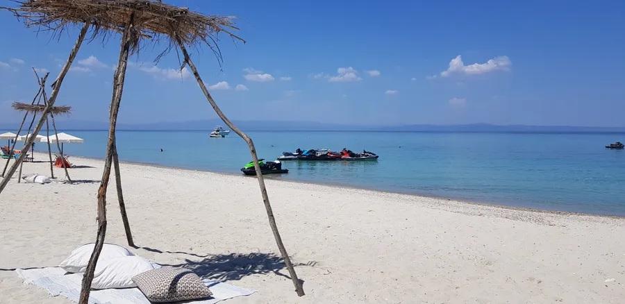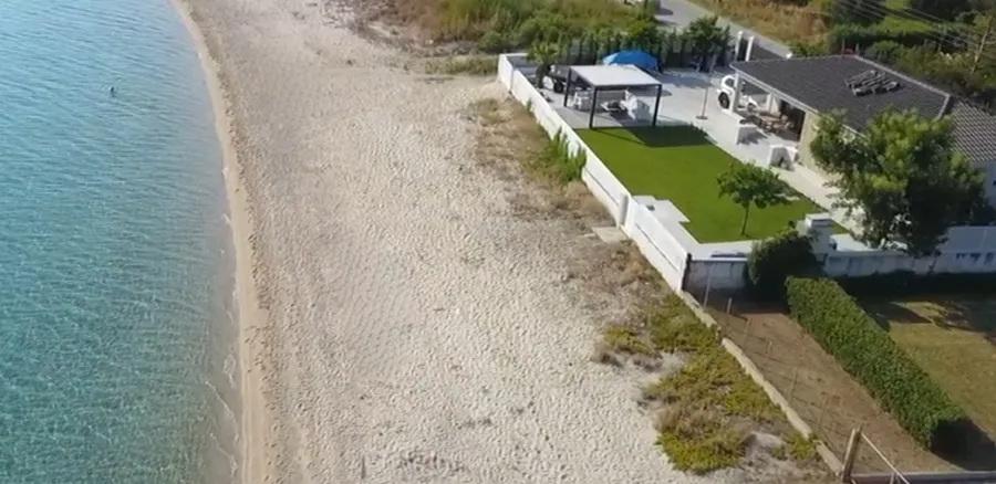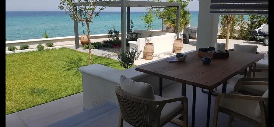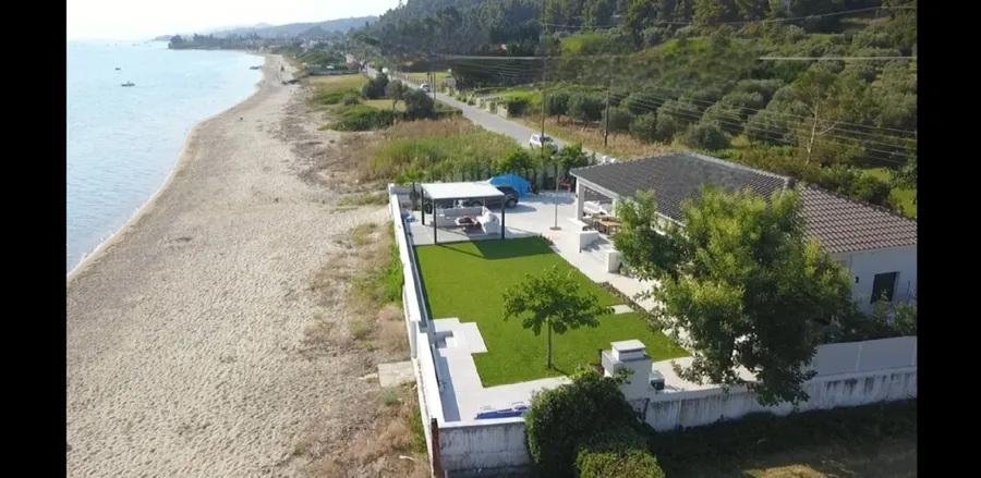 Villa de luxe de 115 m² à vendre à Kryopigi, Chalcidique, directement sur les vagues, sur l'une des plus belles plages de sable fin, entre Polychrono et Kryopigi.