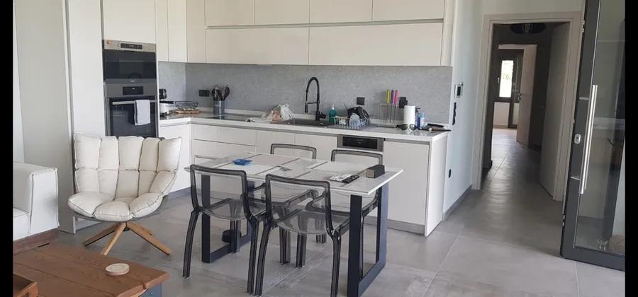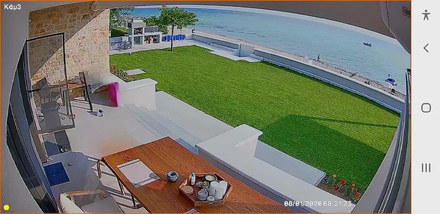 Elle dispose de quatre places de stationnement et d'une rampe de mise à l'eau directement dans la mer depuis le jardin. De plus, elle comprend un système d'alarme, climatisation, courant triphasé, porte de sécurité et une grande véranda avec vue illimitée sur la mer Égée.
