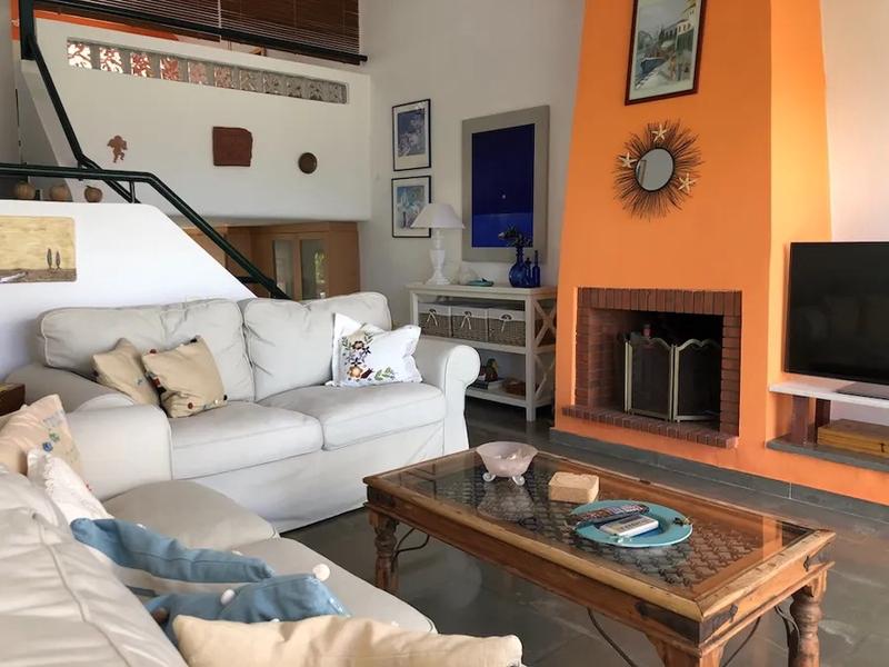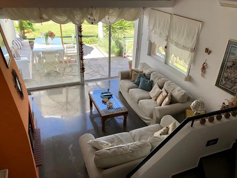Rez-de-chaussée : salon, cuisine et véranda avec vue.