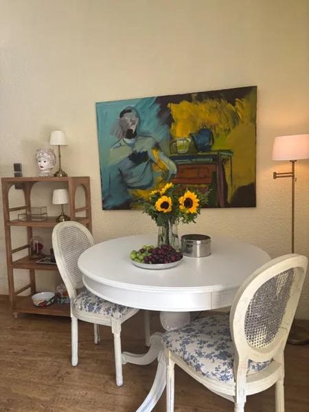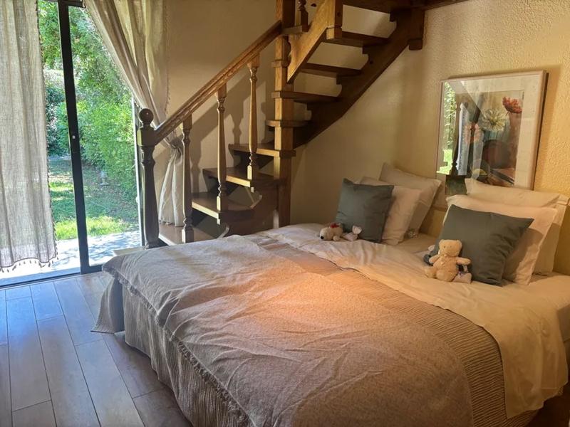 Αναπτύσσεται σε δύο επίπεδα και διαθέτει δύο υπνοδωμάτια και ένα μπάνιο. Στο ισόγειο βρίσκονται η πλήρως εξοπλισμένη κουζίνα, τραπεζαρία και σαλόνι με τζάκι και γωνιακό καναπέ–κρεβάτι, με μεγάλα παράθυρα που ανοίγουν προς τον καταπράσινο κήπο. Το δεύτερο υπνοδωμάτιο βρίσκεται στο ισόγειο, ενώ το κύριο υπνοδωμάτιο είναι μια ρομαντική σοφίτα με ξεχωριστή ατμόσφαιρα.