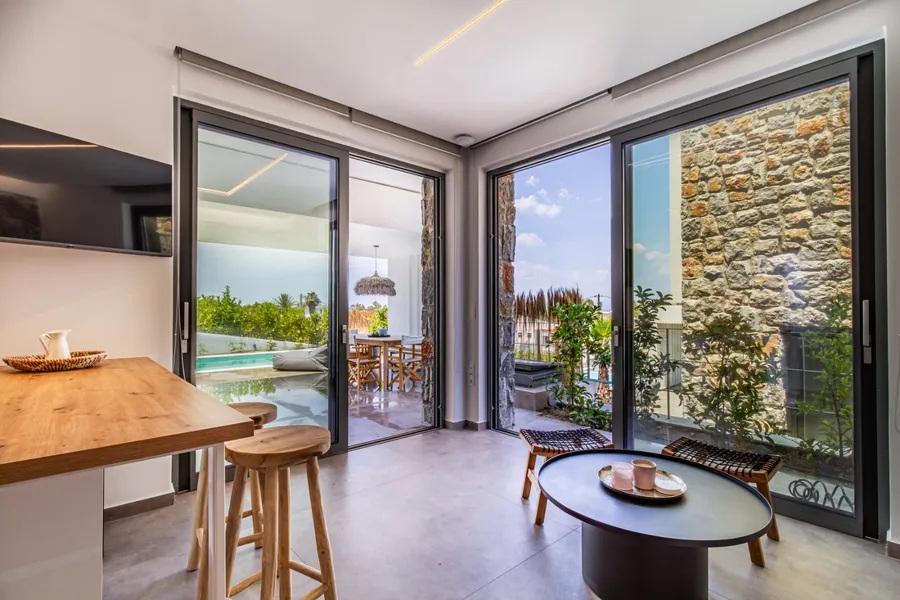 Spațiu unificat sufragerie/bucătărie cu acces direct în exterior