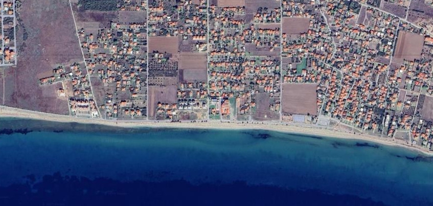 Na prodaju kompletan i građevinski plac površine 1.135 m², sa frontom na asfaltni put. Udaljen je samo 250 m od plaže i 200 m od najbližeg supermarketa. Autobuska stanica sa vezama ka okolnim mestima nalazi se na 200 m. Na 40 km od Soluna i 35 km od aerodroma. Zbog velike površine, pogodan je i za komercijalnu upotrebu.