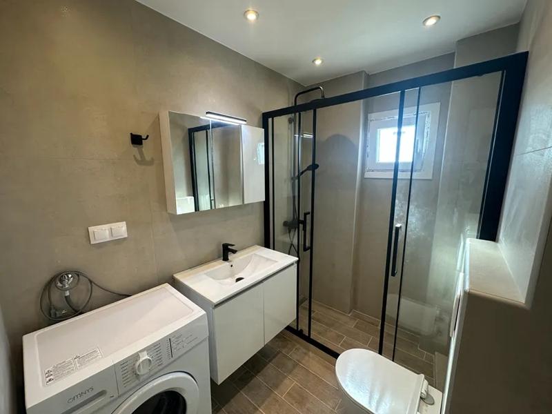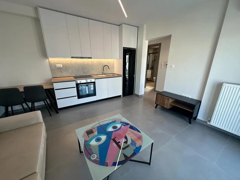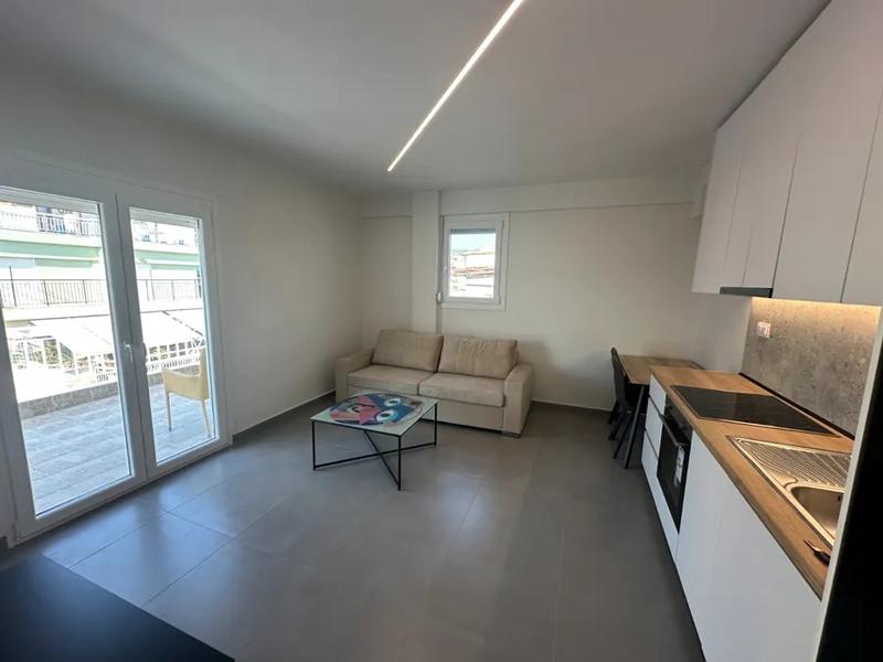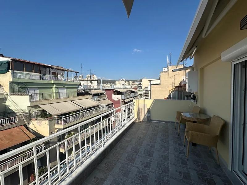 Potpuno renovirana garsonjera na 5. spratu (potkrovlje), izuzetno svetla, tiha i prozračna, u oblasti Faliro. Sastoji se od dnevnog boravka sa kuhinjom, spavaće sobe i kupatila, sa modernim električnim uređajima i nameštajem. Ima prirodni gas, predinstaliranu klimu, sigurnosna vrata, tende i mreže protiv insekata.